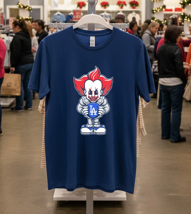 You know, sometimes you see something online, a celebrity wearing it, or a big event rolls around, and you just know you need a particular vibe. I was just scrolling through my feed the other day, and this local D.C. fashion blogger, Maya Lee, was raving about unique graphic tees and how they’re basically the new power suit for casual, confident statements. She specifically mentioned how the trend of ‘storytelling fashion’ – clothes that spark conversation – is taking over the city, especially with fall festivals and holiday gatherings right around the corner. D.C. has been buzzing with talk of sustainable upcycling and unique graphic tees making a statement on the Georgetown streets. That got me thinking about my upcoming Halloween party. I needed something that screams both ‘I love my Dodgers’ and ‘I’m ready for some spooky fun,’ but without the hassle of a full costume. That’s where the Pennywise Los Angeles Dodgers Halloween T Shirts idea clicked! It’s not just for a specific game day or just for Halloween; it’s for anyone who wants to mash up their love for baseball with a classic horror twist. Imagine rocking this at a casual brunch in Adams Morgan, or heading to a pre-game tailgate at Nationals Park, even if it’s not a Dodgers game – it’s a conversation starter! It taps into that current craving for unique, expressive apparel, moving beyond just basic ‘Halloween costume shirts’ and straight into “fashion-forward spooky chic.”