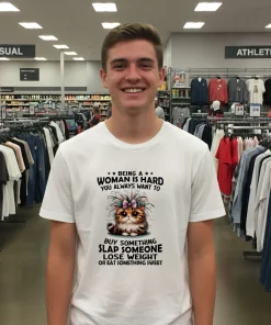 Imagine scrolling through your feed, seeing glowing reviews like, “My Printmuseusa T-shirt arrived so fast, I couldn’t believe it – free shipping and here in 3 days! It’s everything I hoped for,” or “Absolutely love the quality and the quick delivery. Best tee ever!” We hear you. That rush of joy when your package arrives, perfectly on time. Ever wonder how they manage such speedy delivery, and what if I need to return something? It’s that consistent reliability that makes our customers trust us, always reaching for their favorite Cat Being A Woman Is Hard You Always Want To Buy Something Slap Someone Lose Weight Or Eat Something Sweet T Shirts for that perfect blend of comfort and humor.