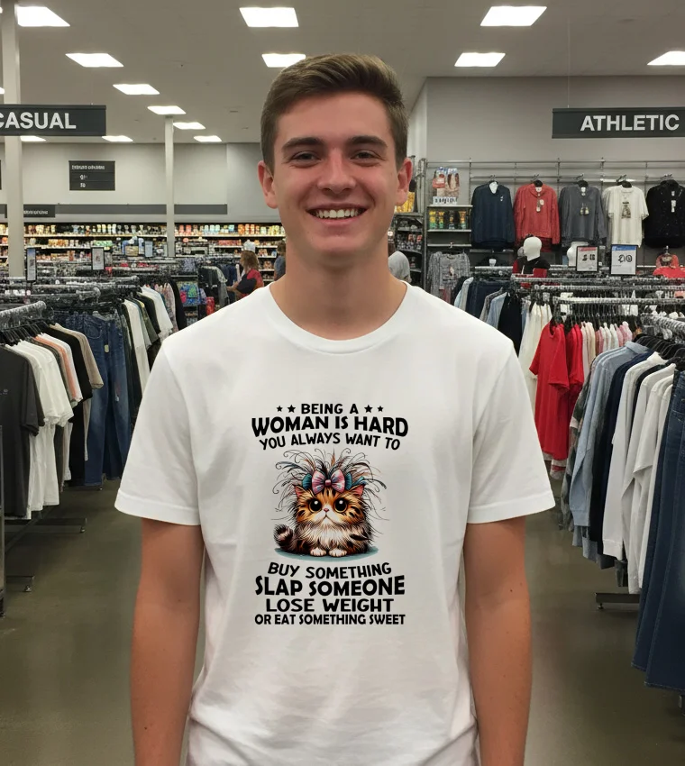 Just last week, while I was scrolling through my Instagram, I saw a post from a local D.C. fashion influencer, “Style_Capitol,” raving about the shift towards more authentic, comfort-core fashion for the everyday Washingtonian. Not the power suits, but what we wear when we’re running errands, grabbing a latte in Georgetown, or catching a casual happy hour in Adams Morgan. It made me think of Sarah, my friend who works at a non-profit downtown. She’s always juggling deadlines, trying to squeeze in a gym session, and then debating if she should cook or just order takeout. The other day, she looked utterly exhausted but cracked a huge smile when she pulled on her Cat Being A Woman Is Hard You Always Want To Buy Something Slap Someone Lose Weight Or Eat Something Sweet T Shirts. “This,” she declared, pointing to the sassy feline, “is my mood board for life.” It perfectly captured that internal monologue. Washington’s street style is increasingly embracing personality over polish, with ethical wear trends and sustainable fashion DC movements showing us that what we wear can be both meaningful and comfortable. This isn’t just a shirt; it’s a declaration for anyone navigating the daily grind, whether you’re trying to figure out “what to wear to happy hour” after a long week or just need a good “casual Friday office attire” option that truly speaks to your soul. It’s for the moments when you feel that inexplicable urge to buy a new plant, or maybe just “slap someone” (figuratively, of course!), or when you’re torn between that new pastry shop and your latest weight loss goal. It’s for you.