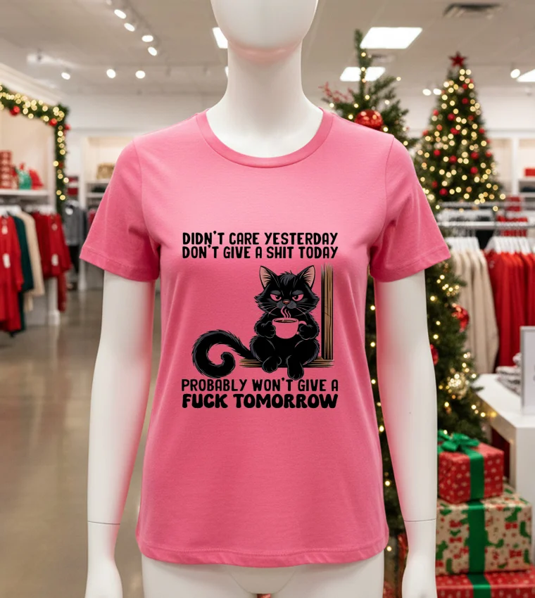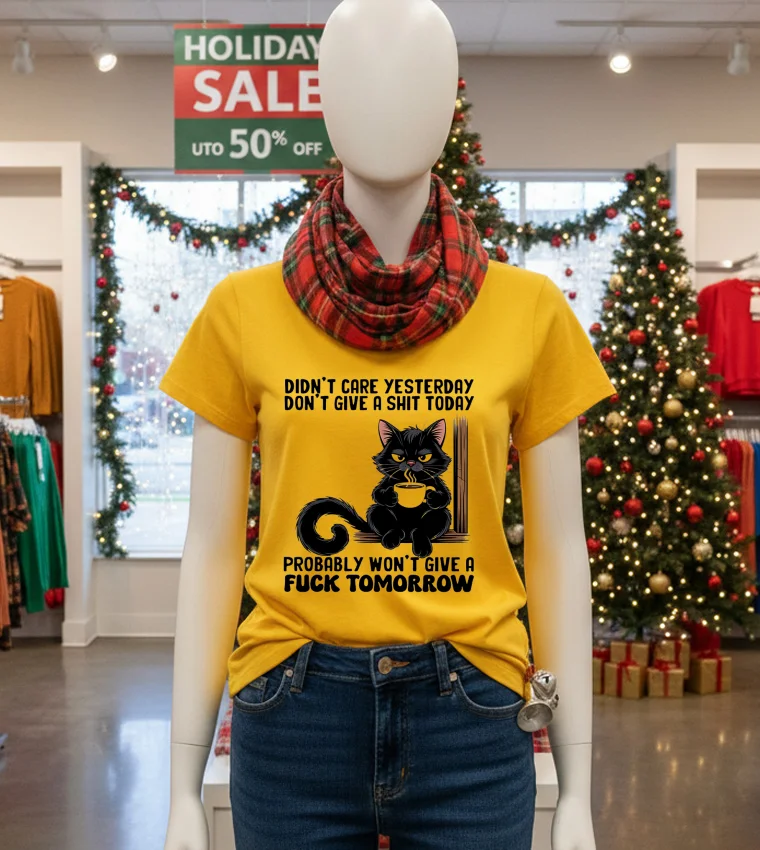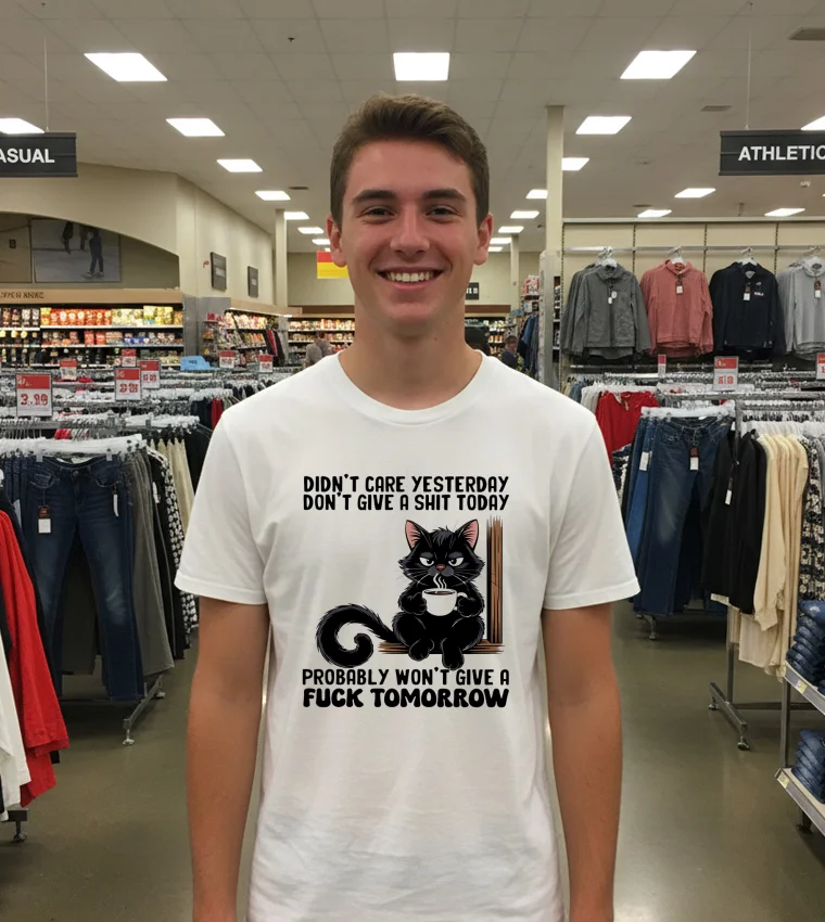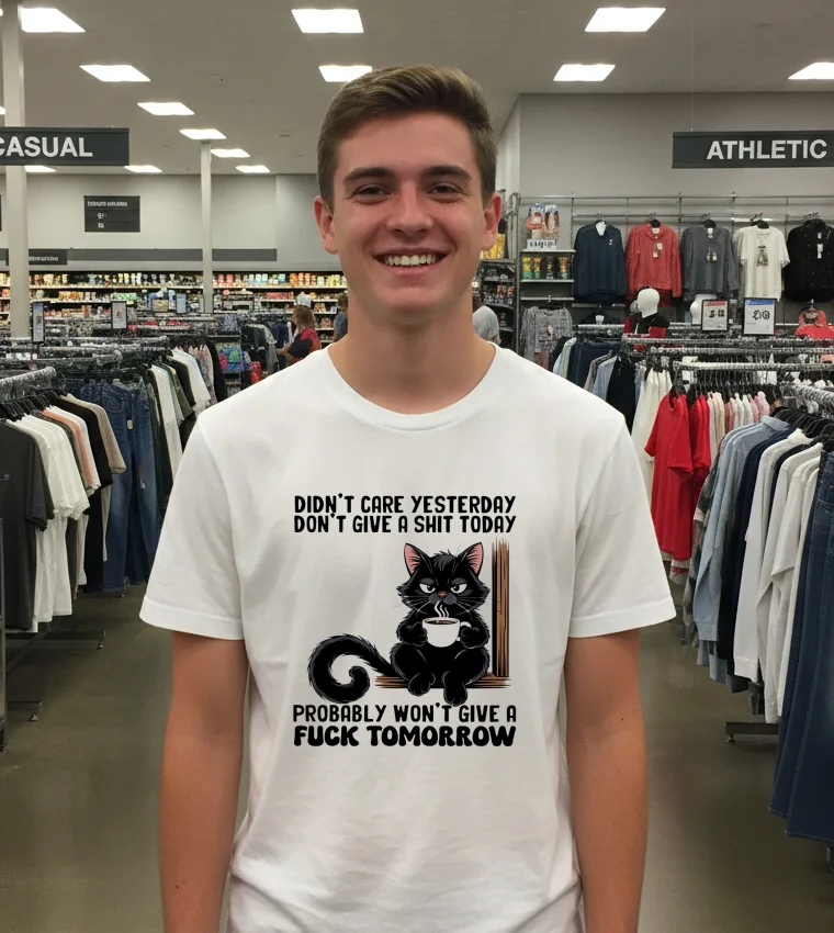 Remember the recent chatter around DC Fashion Week pop-ups, showcasing a shift towards authentic, individual expression? It’s not just about runways; it’s about what resonates with everyday life. Local fashion blogs recently highlighted Washingtonians embracing graphic tees as statement pieces – direct, no-nonsense communication. This instantly brought to mind the Cat Didn T Care Yesterday Don T Give A Shit Today Probably Won T Give A Fuck Tomorrow T Shirts design. This isn’t just a funny tee; it’s a silent anthem for anyone overwhelmed by modern demands, the pressure to conform, or the constant need to ‘perform.’ Maybe you’re a Capitol Hill staffer after a grueling day, or an artist navigating the Adams Morgan gallery scene, needing unapologetic self-preservation. This T-shirt is for those done trying to please everyone, for the spirit prioritizing personal peace. It’s about setting boundaries with humor and truth, tapping into that ‘comfort core’ wardrobe trend that speaks volumes without a word, perfect for low-key luxury moments in a city often defined by its serious demeanor.