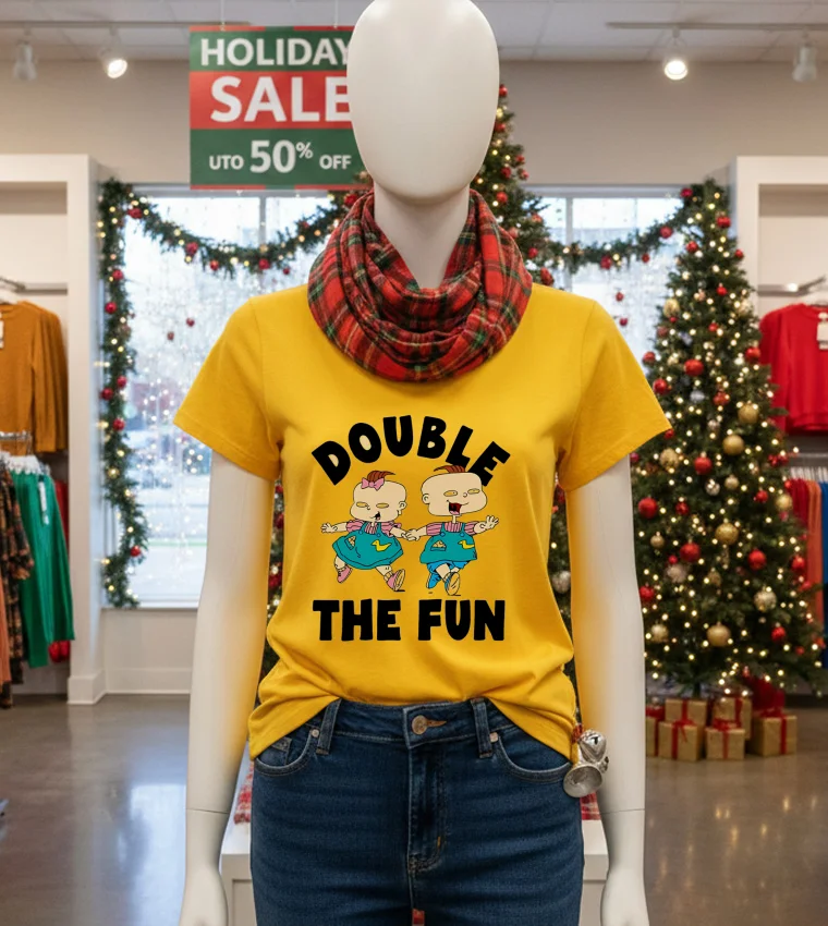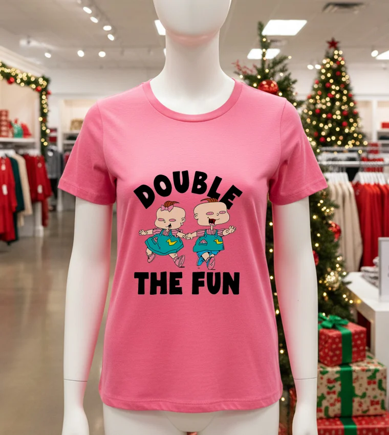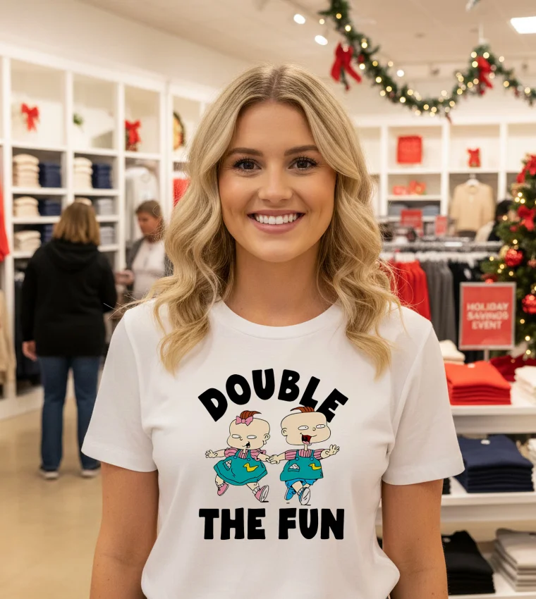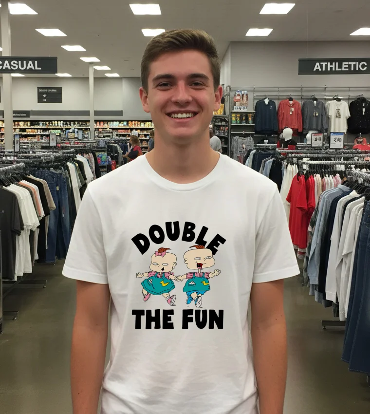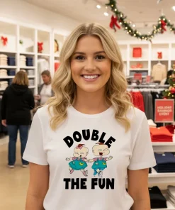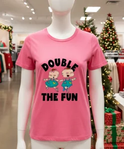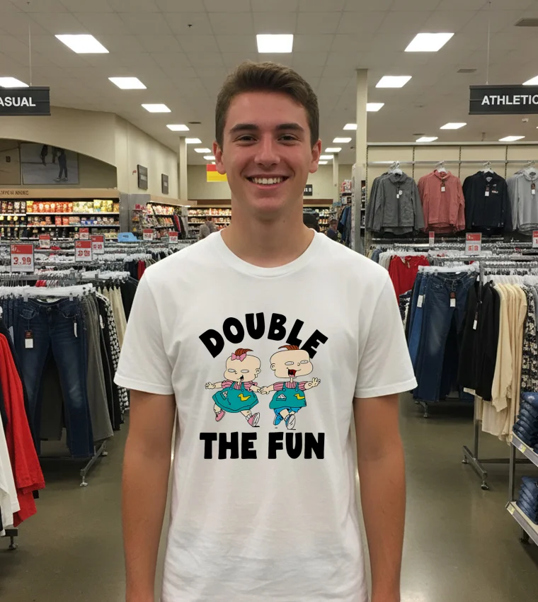 What truly sets this shirt apart isn’t just the catchy phrase, but the clever design that allows the “Double The Fun” graphic to pop without overwhelming. It’s a masterclass in understated cool, strategically placed to catch the eye and spark a smile. This isn’t a billboard; it’s a whispered invitation to a good mood. Wearing it, you feel a little lighter, a little more optimistic. It’s the kind of design that makes you feel proud, like you’re in on a secret joke with the universe. To keep that vibe going, treat your tee with care: a gentle wash in cold water, inside out, will preserve the print’s vibrancy, and a low tumble dry will keep it perfectly fitted. It’s not just an item of clothing; it becomes a companion, a constant source of happy energy for your day.