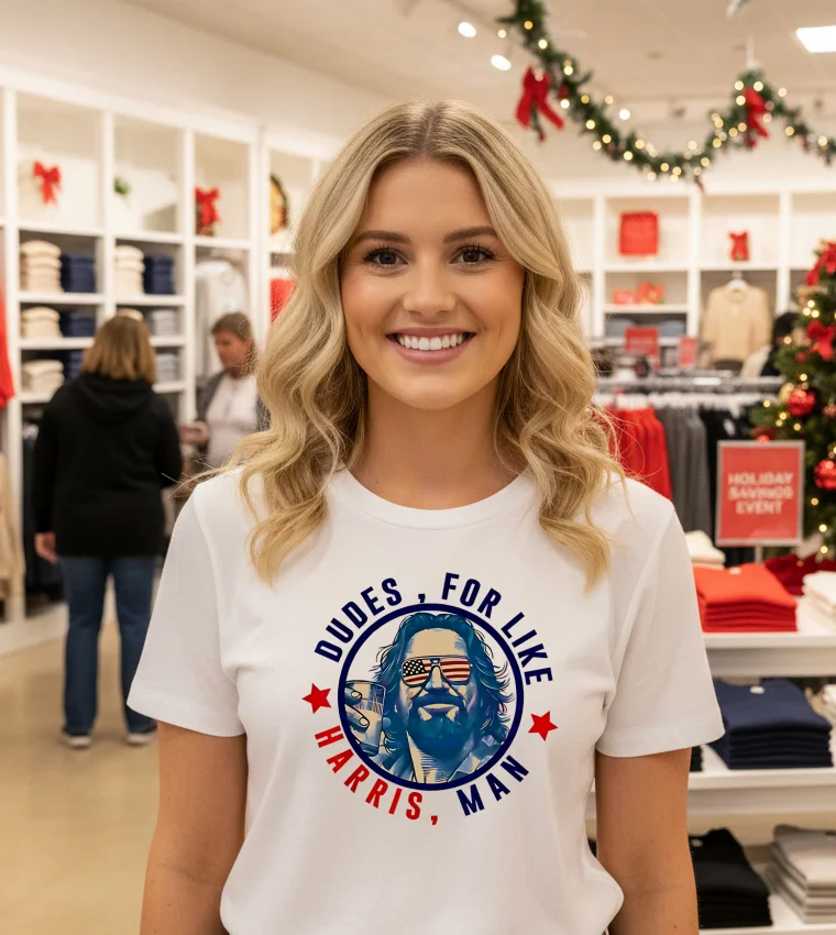 Remember that buzz around the “Summer of Style” pop-up shops that took over Georgetown this past spring? Vogue D.C. was practically obsessed with sustainable streetwear, and local influencers were all about making a statement without breaking the bank. That’s exactly where the Dudes For Like Harris Man American Sunglasses Shirt fits in. My buddy, Mark, who’s usually pretty chill about clothes, saw a snapshot of Senator Klobuchar on Twitter, and while she wasn’t wearing this shirt, her casual-chic vibe at a local coffee shop sparked something. He messaged me, “Dude, I need a tee that says something without being preachy, you know? Something that feels current, like those oversized graphic tees everyone’s rocking at The Wharf now.” He wanted something for the upcoming Jazz in the Garden series at the National Gallery of Art, a place where people really embrace unique expressions. This shirt? It’s perfect for that. It’s got that relaxed, ‘I’m in the know’ feel that people are craving, whether they’re at a Capitol Hill picnic or just grabbing a latte on 14th Street. It speaks to that laid-back American spirit, a subtle nod to a cultural moment without being overbearing. Plus, it nails the current trend for vintage-inspired graphics and unisex fashion that’s flooding the D.C. scene.