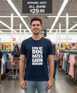 You know, walking around Capitol Hill these days, it’s not just power suits you see. “Streetwear meets political statement” is definitely the new vibe, especially after some of the headlines last month. Remember that pop-up fashion show near the Wharf? So many people were rocking statement tees that spoke volumes about their personal style and political identity. It got me thinking about how much we, as ordinary citizens, want to express ourselves. And let’s be real, with all the buzz around sustainable fashion and ethical brands in DC, choosing a shirt that speaks your mind also feels like a conscious, empowered choice. Just last week, I was scrolling through the news, another headline about California politics popping up, and I thought, “Man, someone needs to say this!” Then, boom, I remembered seeing this exact design. This isn’t just a shirt; it’s a conversation starter at the farmer’s market, a nod of agreement at the coffee shop, or even just a chuckle while walking your own dog in Rock Creek Park. It’s for those of us who appreciate a good laugh, and maybe a little political satire, especially when it involves our furry best friends. It’s perfect for casual Friday, a weekend protest, or just making your feelings known without saying a single word. It really captures that collective sigh of “You gotta be kidding me!” that so many people feel right now.