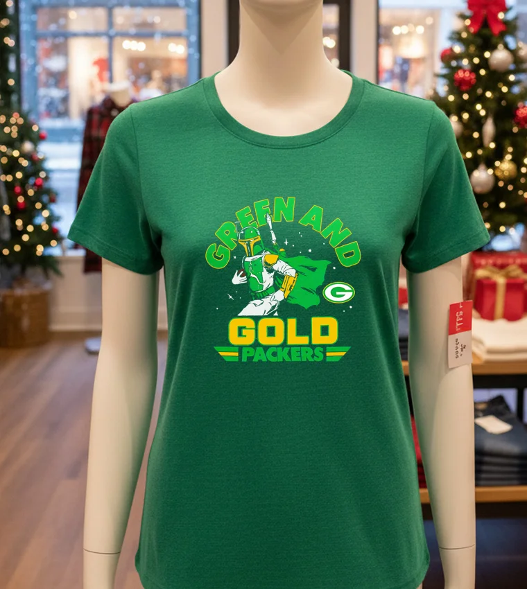 What truly sets this shirt apart is its incredible design. It’s not just a logo slapped on a tee; it’s a seamless, almost cinematic blend of the legendary Green Bay Packers heritage with the iconic Star Wars universe. Think about that rich green and gold, now imbued with the mystique of a galaxy far, far away! The graphic quality is top-notch, ensuring every detail, from the Rebel Alliance symbol subtly woven into the Packers’ ‘G’ to the faint outline of a Wookiee-sized football, pops without overwhelming. It’s a conversation starter, definitely. You’ll feel a kind of comfortable confidence, soft against your skin, perfect for pairing with classic denim or even a modern utility jacket for that laid-back, street-style vibe. Oh, and it feels just right, you know? It’s truly a standout piece that just fits your style. Buy now, and let your fandom shine, or make it the perfect gift for that special fan in your life!
