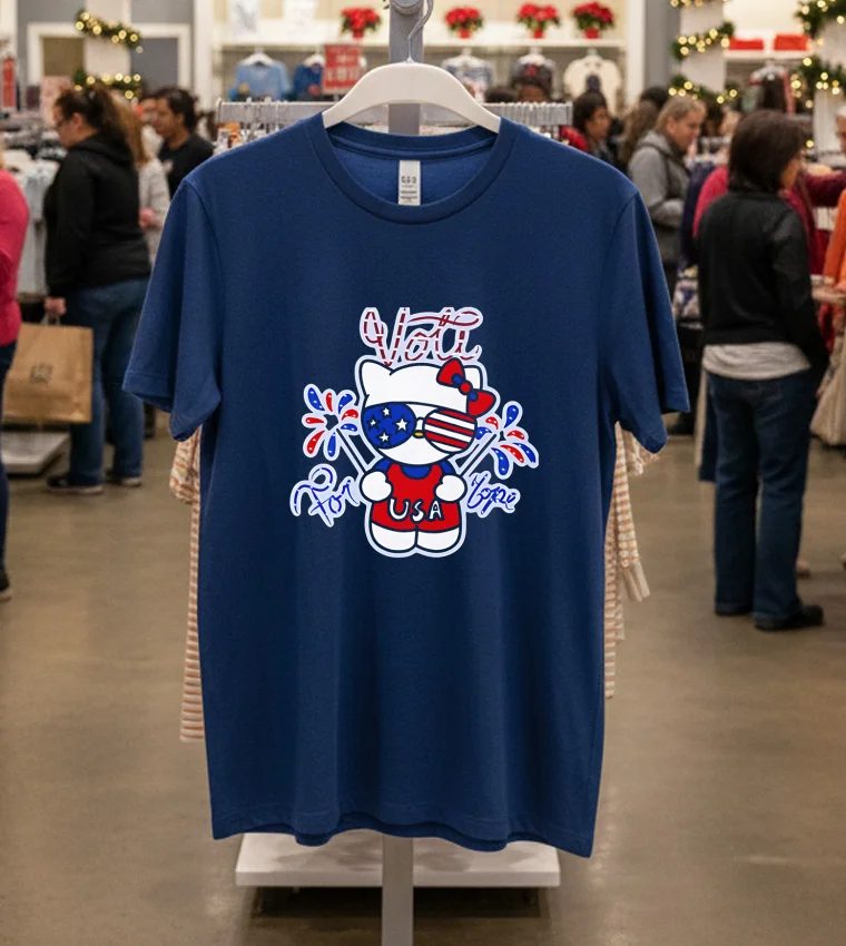 You know, I was watching ‘Good Morning Washington’ just last week, and they had a whole segment on the rise of “civic chic” – how people in the capital are increasingly using their style to express their views, especially with the 2024 election cycle heating up. They talked about everything from subtle pins to bold graphic tees, highlighting this shift towards sartorial advocacy. And honestly, it immediately made me think of this incredible tee. My friend Sarah, she lives just outside D.C., near Georgetown, and she’s always looking for ways to engage without getting bogged down in the daily news cycle. She told me she saw someone on the Metro wearing a really cool, subtle but impactful graphic tee, and it sparked an idea. With all the buzz around the election, and how much D.C.’s street style is reflecting that, she wanted something that felt uniquely ‘her’ – a piece that spoke to the times but also brought a smile. She’s been curating her capsule wardrobe to be more expressive lately, leaning into conscious consumerism, and this tee perfectly fit the bill. It’s not just about voting; it’s about the freedom to choose, to express yourself, to embrace optimism. The whimsical Hello Kitty design, combined with a message that resonates with the core values of our nation, felt incredibly timely and, dare I say, empowering. It’s a fantastic way for anyone, whether you’re marching on the Mall or just heading to the grocery store, to add a bit of “civic chic” to their everyday look without being overly preachy. It really shows how D.C. fashion isn’t just about power suits anymore; it’s about personal statements and authentic expression.