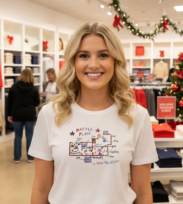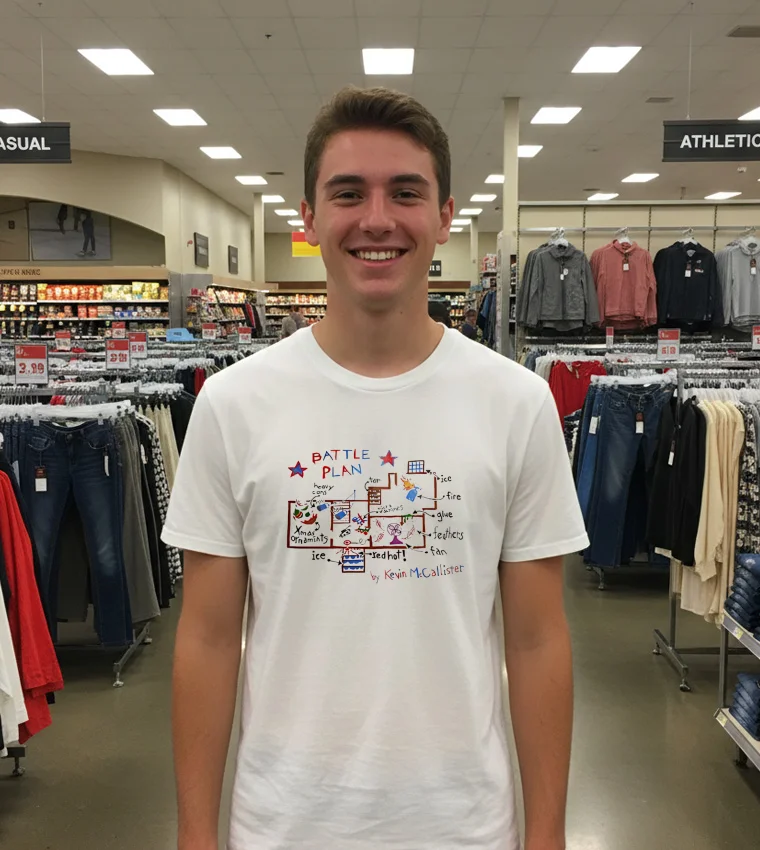 Just last week, while catching up on the buzz around the Georgetown Film Festival here in Washington D.C., I saw a local style blogger, Maya Sharma, talking about the resurgence of 90s nostalgia in street style. She highlighted how graphic tees, especially those with iconic pop culture references, are becoming essential for a sophisticated yet playful urban look. It immediately brought to mind the Home Alone Kevin Mccallister Battle Plans Shirt. Imagine this: you’re heading to the National Building Museum for a new exhibit, or maybe just grabbing coffee in Dupont Circle. The city’s buzzing with a mix of tailored power suits and “comfort-chic” ensembles, a true testament to D.C.’s evolving fashion identity. This isn’t just about throwing on any old tee; it’s about making a statement that’s both witty and incredibly stylish. Maybe you’re planning a casual movie night with friends, or perhaps an impromptu trip to the Capitol Hill Farmer’s Market. This shirt isn’t just clothing; it’s a conversation starter, a nod to a shared cultural moment that transcends generations. It fits perfectly into the current “heritage Americana” trend we’re seeing, blending timeless comfort with a touch of playful rebellion. You can pair it with anything from distressed denim and chunky sneakers for a true “vintage revival” vibe, or layer it under a sleek blazer for that smart-casual D.C. aesthetic. It’s for anyone who appreciates a good laugh, loves a classic film, and wants to inject a bit of personality into their everyday “capsule wardrobe.” It’s practical, it’s personal, and it’s oh-so-D.C. in its understated cool.