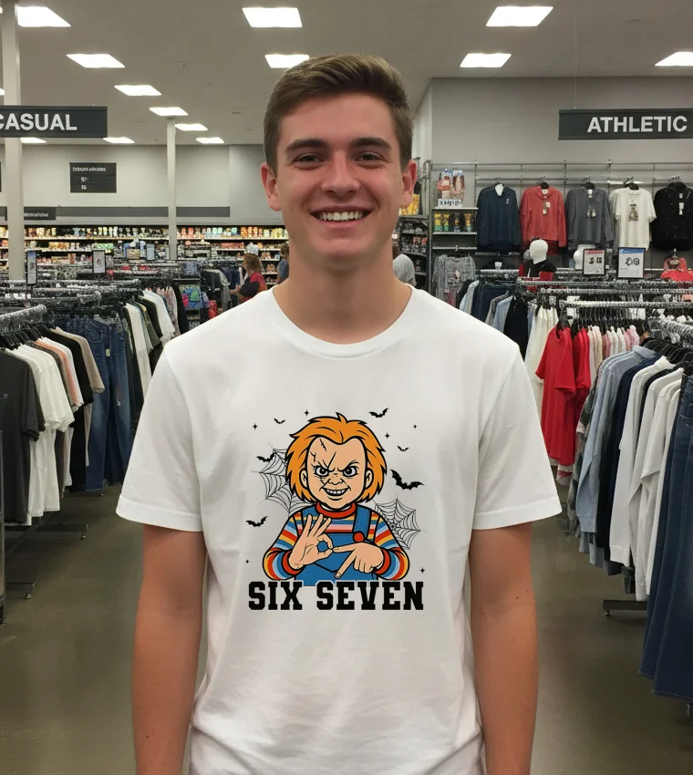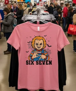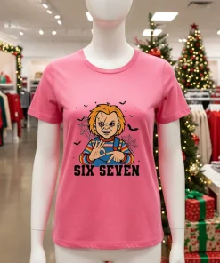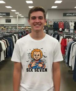 Remember last month, when that iconic Washington-based fashion blogger, ‘Capitol Chic,’ showcased vintage horror aesthetics making a huge comeback? She talked about how a single, well-chosen graphic tee can instantly elevate your street style, especially with the fall season approaching and everyone buzzing about the new “Chills & Thrills” film festival opening in Georgetown. That’s exactly the vibe this shirt nails! Imagine this: you’re heading to the Cherry Blossom pop-up market, maybe grabbing a chai latte, and suddenly, you spot someone rocking that tee. Or perhaps you’re scrolling through your feed, seeing all the buzz about the upcoming “Six Seven Movie” – it’s not just a film, it’s a cultural moment, anticipated to be the definitive horror event of 2025. This isn’t just a shirt for Halloween anymore; it’s a fashion-forward nod to a genre that’s always evolving. Think about pairing it with distressed denim and a sleek bomber jacket for an effortless, urban-cool look, perfect for navigating the trendy U Street corridor. It’s for the film buffs, the style trailblazers, or anyone who loves a good scare and wants to wear their passion on their sleeve (literally!). It’s not just a T-shirt; it’s a piece of pop culture history in the making, and it connects you to a community that gets it.