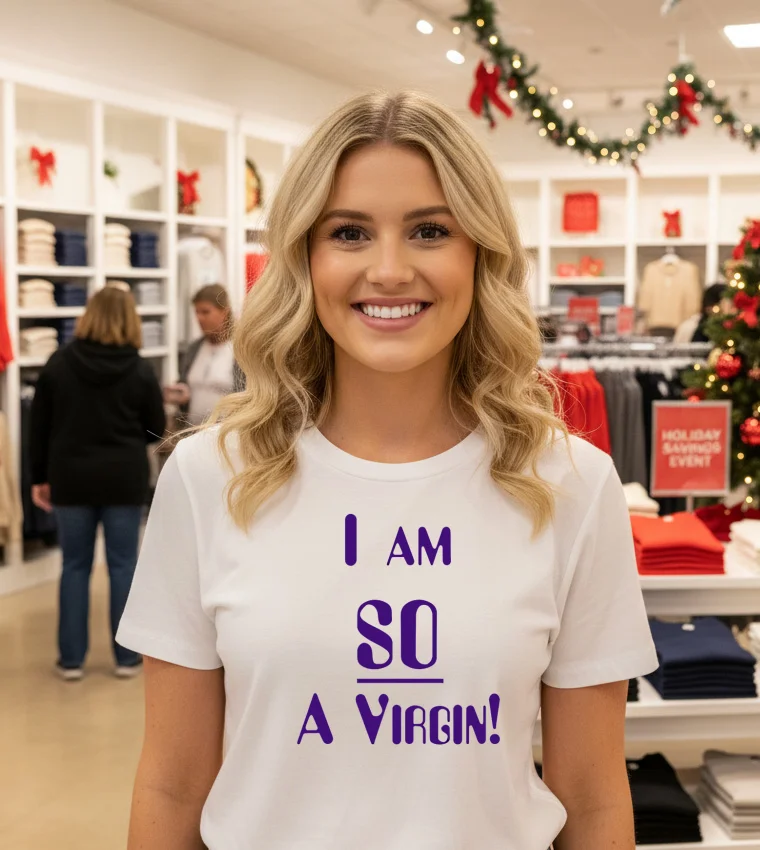 Remember that buzz from D.C. Fashion Week last month, where all the talk was about ‘conscious fashion’ and making bold personal statements? It wasn’t just about what you wore, but what your clothes said. Well, let me tell you about Sarah, a bright-eyed intern working on Capitol Hill. She’s navigating the bustling, sometimes overwhelming, landscape of Washington D.C., where everyone seems to have an opinion, a cause, or a perfectly curated LinkedIn profile. Sarah, like many young professionals these days, often felt a little invisible in a city full of big personalities and even bigger policy debates. She’d seen the discussions trending on social media, from “vintage revival” to “gender-neutral street style” dominating the local scene, and she yearned for something that spoke to her. One Tuesday evening, scrolling through a local blog discussing “expressive graphic tees” as the next big thing in D.C. casual wear, she stumbled upon an image of the I Am So A Virgin T Shirts tee. It wasn’t just a shirt; it was a vibe. It was quirky, a little defiant, and utterly honest. For Sarah, who often felt pressure to be “seen” in a certain way, it represented a quiet rebellion, a reclaiming of her own narrative. She imagined wearing it to her favorite coffee shop in Dupont Circle, or even a casual Friday at the office, knowing it would spark a smile, a chuckle, or perhaps even a nod of understanding from someone else who felt the same. This wasn’t about being overtly provocative; it was about self-acceptance and a playful challenge to unspoken expectations, perfectly aligning with the “sustainable fashion” movement that encourages owning pieces that truly resonate with you.