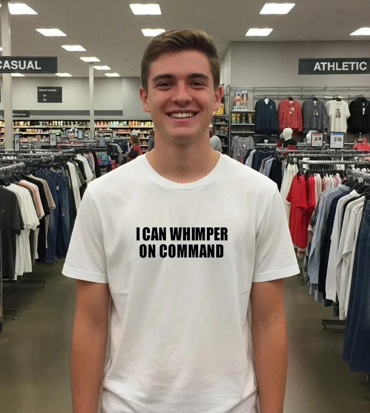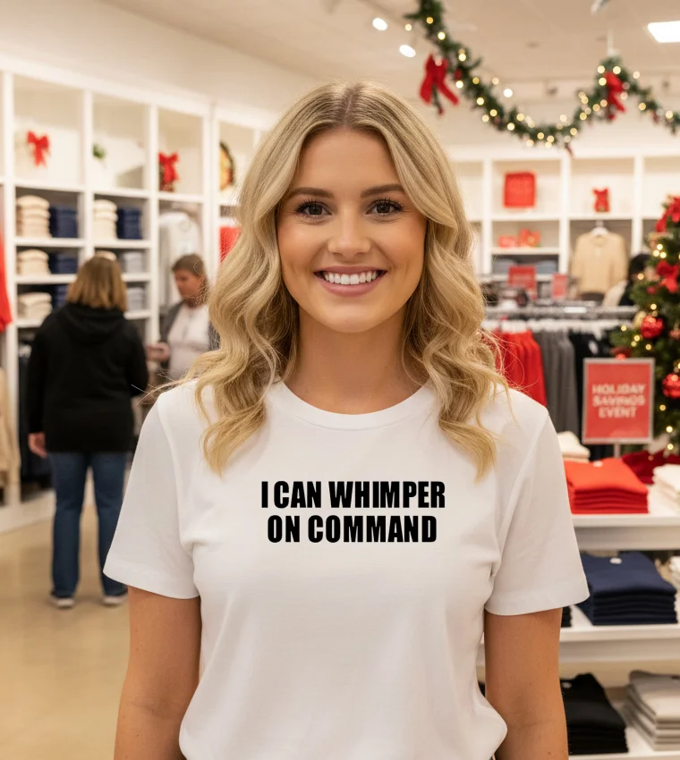 Just last week, I caught a snippet from that viral D.C. street style blog, ‘Capital Threads,’ talking about how D.C.’s ever-serious vibe sometimes needs a dash of genuine, unvarnished personality. They featured someone rocking a tee that just screamed ‘I’m real, I’m here, and sometimes, I’m just trying to make it through Tuesday.’ And it immediately brought to mind the I Can Whimper On Command Shirt. Imagine Sarah, a junior analyst on Capitol Hill. Her days are a blur of policy briefings and intense meetings, navigating the high-stakes world of D.C. politics. She loves her tailored blazers and smart separates for work, embodying that crisp “D.C. power dressing” aesthetic, but come the weekend, or even a particularly casual Friday, she needs an outlet. This shirt isn’t just fabric; it’s a statement. It’s for those moments when the pressure builds, and you just want to acknowledge it with a chuckle instead of a breakdown. It’s for the person who’s bold enough to admit they’re human, to cut through the D.C. formality with a touch of authentic, relatable humor. Whether she’s unwinding at a Georgetown coffee shop, grabbing a quick bite during a “Fashion on the Hill” pop-up event where local designers are showcasing their latest “expressive casuals,” or just chilling with friends after a long week of advocating for sustainable initiatives, this tee fits right in. It’s part of that growing D.C. trend of curating a personal brand that isn’t afraid to show vulnerability, a stylish wink in a sea of serious suits. It perfectly captures that modern sentiment of embracing your imperfections, making it a staple for anyone looking to add a touch of relatable humor to their wardrobe amidst the city’s relentless pace.