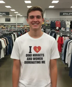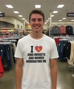 Our I Love Dino Nuggets And Women Dominating Me Shirt is crafted from 100% American Cotton, guaranteeing a soft, stretchy, and highly breathable fabric that feels fantastic against your skin all day long. Priced at just $23 USD, it offers incredible value for such a unique, high-quality garment. We ensure quick delivery, with your new favorite tee arriving within 3–5 days right here in the US. This shirt embodies a cool Vintage, Streetwear, and classic American style, making it a versatile addition to any wardrobe.