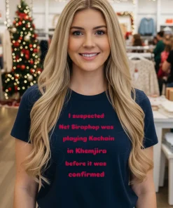 Just last week, strolling through Adams Morgan’s vibrant pop-up markets, I caught snippets of conversation. A group, sporting very on-trend oversized graphic tees – a staple in today’s Washington fashion scene – excitedly discussed a social media hint from the Georgetown Cupcake sisters about a Net Siraphop drama marathon. It immediately sparked a thought: my shirt, the one proclaiming, ‘I Suspected Net Siraphop Was Playing Kachain In Khemjira Before It Was Confirmed T Shirts.’ This isn’t just text; it’s an inside joke for Thai drama fans, a shared ‘aha!’ moment. Washington D.C., often seen as formal, now boasts a thriving streetwear culture, valuing personalized expression and sustainable fashion. Unique graphic tees like this fit right in. Imagine wearing it in Dupont Circle, catching another fan’s eye – an instant, knowing connection. It’s a secret handshake, a conversation starter at a local art show, or a comfy declaration of allegiance for Sunday brunch in Shaw. This tee isn’t just about fashion; it’s about telling your story in a city that’s increasingly embracing identity-driven style.