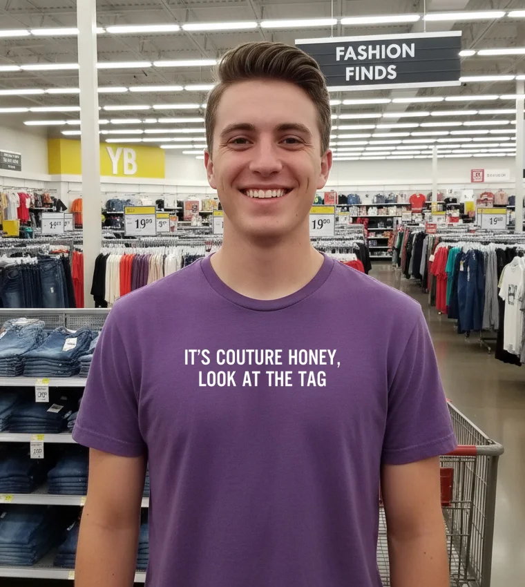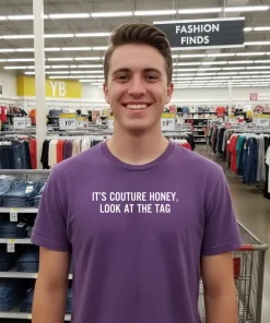“Got my It’s Couture Honey Look At The Tag Text Shirt in just three days, and WOW, it’s even better than the pictures! Seriously, Printmuseusa delivers quick and free, which is always a pleasant surprise. Makes me wonder if all their orders are this speedy, or if I just got lucky! I swear, this tee is already a go-to. It just feels so soft against the skin, you know? Makes you happy just putting it on.