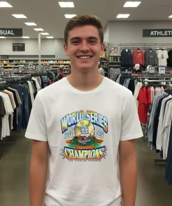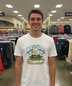 The vintage wash on this shirt? Gosh, it’s just perfect. It’s got that beautifully faded look, like you’ve owned it forever, but without any of the actual wear and tear. The Dodgers script and the “2025 World Series Champions” text are subtly distressed, giving it a cool, authentic vibe that you just don’t get with brand-new, stiff prints. It’s not just a logo; it’s a piece of art! The cotton feels incredibly soft against the skin, light and breathable – ideal for those warm fall evenings when you’re glued to the game. I can picture myself throwing it on with a pair of faded jeans and some classic sneakers for a laid-back look, or even layering it under an open plaid shirt when the weather gets a little crisper. It’s got that easy-going, effortlessly cool style that just works. Seriously, it’s a versatile piece that feels as good as it looks. Perfect gift for any Dodgers fan, or really, anyone who appreciates great American streetwear!