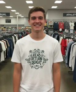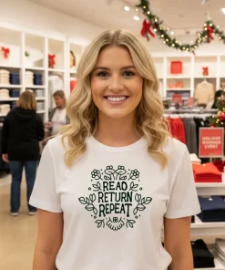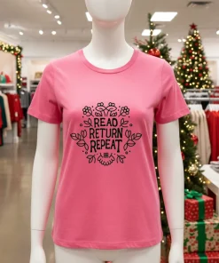 Let’s talk about the design for a second, because that’s where the magic really happens, isn’t it? The simple, bold typography of ‘Read Return Repeat’ isn’t just text; it’s a philosophy. It’s a quiet rebellion against the disposable, a celebration of circularity and the enduring power of stories. And the feeling? Oh my goodness, it’s like wearing a cloud! It’s got that perfect lived-in feel from the first wear, like your favorite concert tee you’ve owned for years. You can dress it up with a blazer for a smart-casual office look if you’re feeling adventurous, or just throw it on with your favorite jeans and sneakers for that classic, relaxed American style. It’s so versatile, it’s ridiculous! It truly makes putting an outfit together feel, like, zero effort. Seriously, you need this shirt. Perfect gift for that bookworm friend, or, you know, just for you!