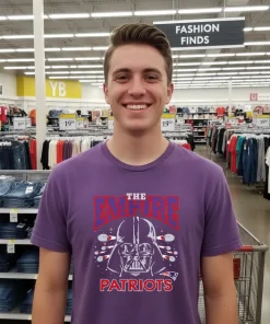 What truly sets this shirt apart, in my humble opinion, is the ingenious design element that marries these two iconic universes. Perhaps it’s the subtly integrated lightsaber hilt forming the “I” in Patriots, or a helmet that perfectly blends a stormtrooper’s sleek lines with the Flying Elvis. It’s not just a mashup; it’s an artful convergence that speaks volumes without being loud. The advantages? It’s incredibly versatile! You can wear it to a game, a movie night, or just out and about. It feels like slipping into an old favorite from the very first wear – so soft and broken-in, you know? Pair it with your comfiest jeans and classic sneakers for a relaxed vibe, or even throw on a sharp bomber jacket for a touch of urban sophistication. It’s the perfect gift for that special someone who loves both the gridiron and a galaxy far, far away!