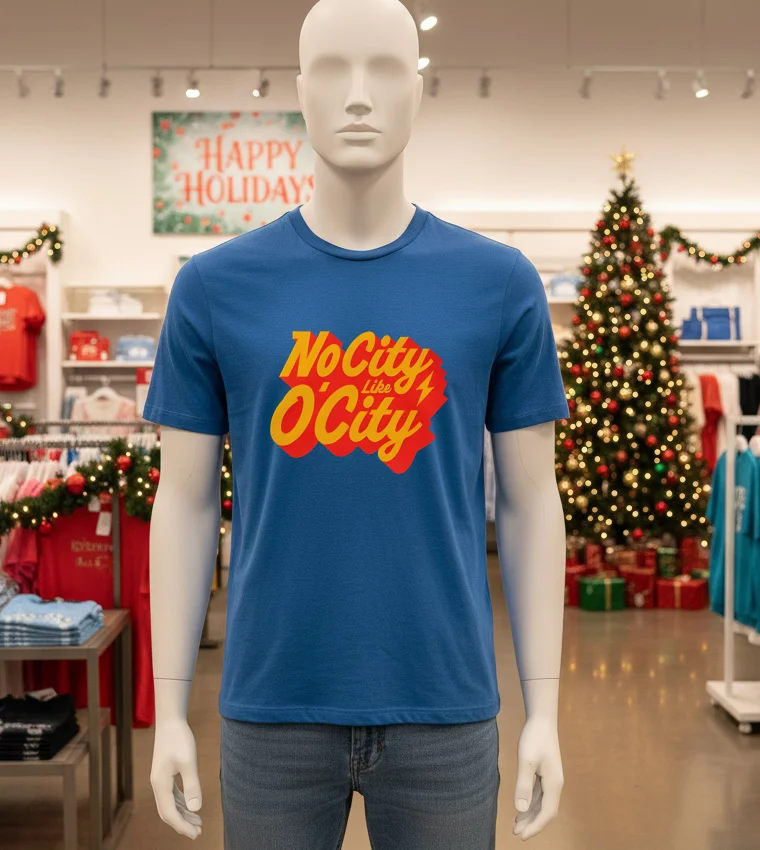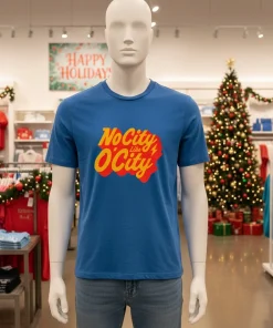Now, let’s zoom in on what truly makes this tee special: that ‘No City Like O City’ graphic. It’s not just a phrase; it’s a feeling. The font, the layout – it’s got that perfectly worn-in, classic Americana vibe, like a favorite concert tee you’ve owned forever, but without the actual years of wear and tear. The advantage? You get that immediate sense of comfort and history without having to dig through thrift store bins (which, let’s be honest, can be a whole adventure!). The fabric itself? Oh man, it feels like pure butter against your skin. It’s soft, it breathes, and it has just the right amount of drape to look relaxed but never sloppy. Styling this bad boy is a breeze. Throw it on with your favorite distressed denim and some fresh kicks for that ultimate street-smart look. Or, try layering it under an open plaid shirt or a lightweight bomber jacket for a bit more edge. Heck, I’ve even seen folks rock similar graphic tees with a crisp pair of chinos and a baseball cap – instant cool! It’s versatile, comfortable, and seriously elevates your casual game. You need this in your life, trust me! It’s the perfect gift for that friend who bleeds Thunder blue, or, you know, just for yourself. Go on, you deserve it!