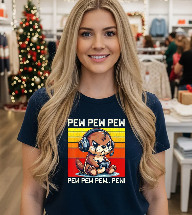 Remember when that major D.C. fashion blogger, “Capitol Chic Daily,” posted about embracing “playful power casual” for the upcoming ‘Tech & Culture Summit’ right here in Washington? She talked about how a well-chosen graphic tee can bridge the gap between serious innovation and approachable style, a trend echoing through the vibrant street style D.C. scene. That’s exactly where my mind went to the Otter Gamer Pew Pew Pew Vintage T Shirts. I pictured myself, maybe not a public figure, but an everyday person navigating the bustling Georgetown streets, heading to a casual startup meet-and-greet, or even just grabbing a coffee before tackling my own creative projects. This isn’t just a shirt; it’s a nod to a generation that grew up with controllers in hand, yet now influences the world. It’s perfect for the “power casual” vibe she championed, especially for those of us who appreciate sustainable fashion but don’t want to sacrifice personality. With “oversized graphic tees” and “eco-friendly T-shirts” being hot search terms this week, this tee effortlessly fits into the conversation about what’s trending, whether you’re brainstorming in a co-working space near Dupont Circle or exploring the latest pop-up art gallery. It’s about showing off your unique flair in a city that often demands a more buttoned-up approach, proving you can be both professional and playfully authentic.