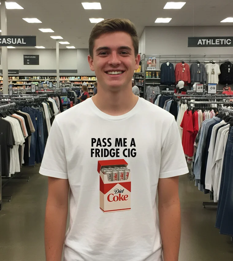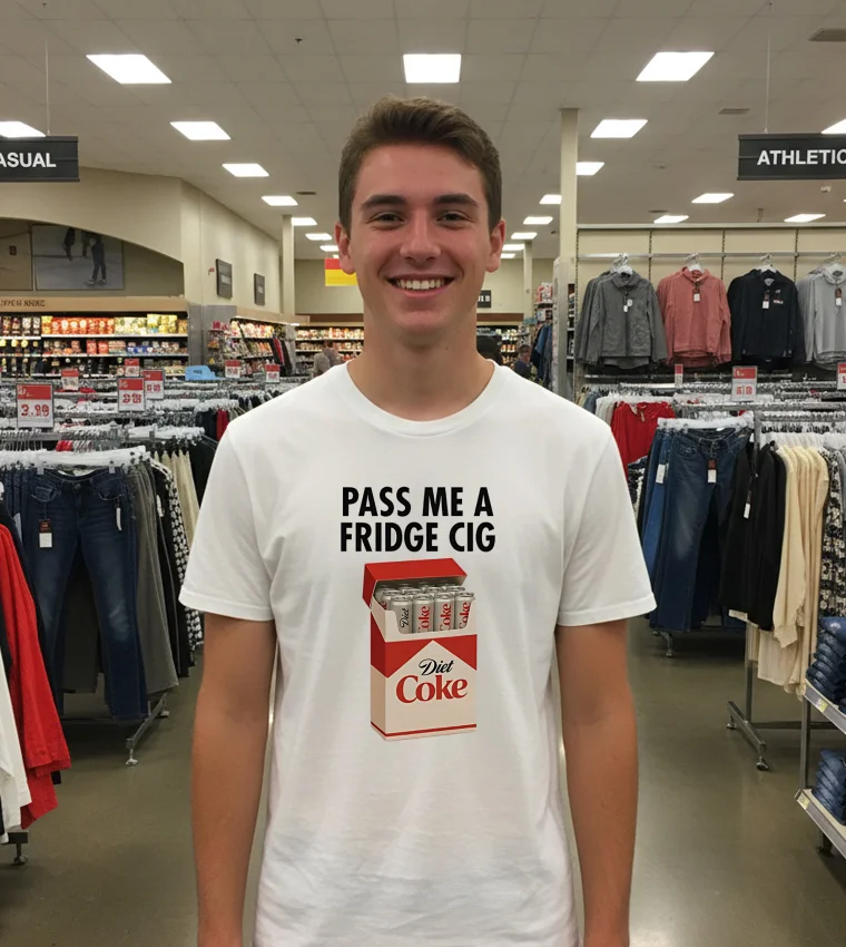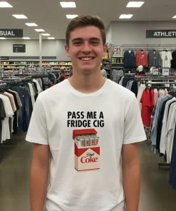 Ready to elevate your everyday comfort with a dose of wit? Why settle for bland when you can express yourself so effortlessly? Don’t miss out on adding the iconic Pass Me A Fridge Cig Diet Coke Shirt to your wardrobe! We guarantee a high-quality, beautiful tee, delivered quickly right to your door. What are you waiting for? Find your perfect fit at Printmuseusa today!