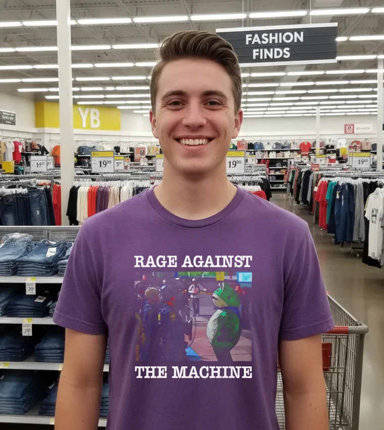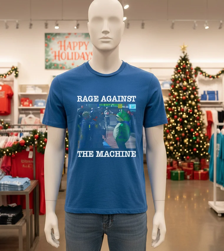You know, sometimes fashion isn’t just about what’s “in”; it’s about making a statement, or even just a smile. Just last week, while scrolling through my feed, I caught a clip of a local Washington D.C. fashion blogger, Maya Singh, talking about the rise of “rebellious nostalgia” in streetwear. She was highlighting how vintage band tees and graphic prints are back, especially those with a subversive edge. She even mentioned how she saw someone rocking a tee with a bold, almost ironic message near a pop-up thrift market in Georgetown, where the sustainability in fashion movement is really taking root. It immediately made me think of the Rage Against The Machine Frog Retro Shirt. This isn’t just any old band tee; it’s a subtle nod to a legendary group known for its outspoken views, but with a whimsical, retro frog twist that lightens the mood. Perfect for a brisk D.C. autumn day, whether you’re grabbing coffee on U Street, catching a protest rally (they happen often here!), or just meeting friends for brunch in Adams Morgan. It fits right into the current vibe of personalized style and conscious consumerism that local boutiques are championing. Think about it: you want something that stands out, but isn’t over-the-top. Something that whispers “I know what’s up” without shouting it. This shirt is for the person who appreciates a bit of political irony, loves a good throwback, and values comfort without sacrificing coolness. It’s ideal for weekend warriors hitting up the National Mall, students on campus at Georgetown University, or anyone who wants to inject a little playful dissent into their everyday look. It’s more than just a shirt; it’s a conversation starter in a city that thrives on conversations.