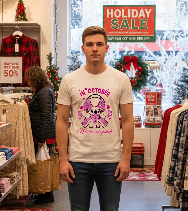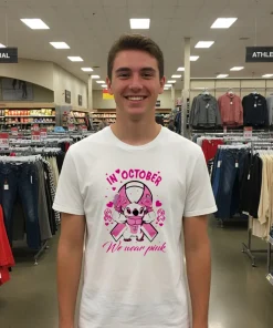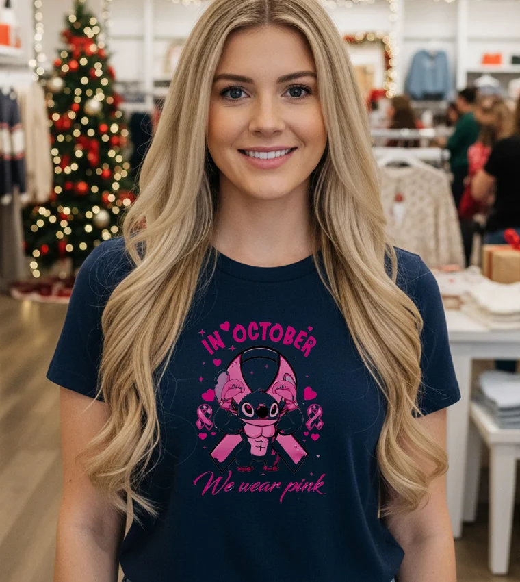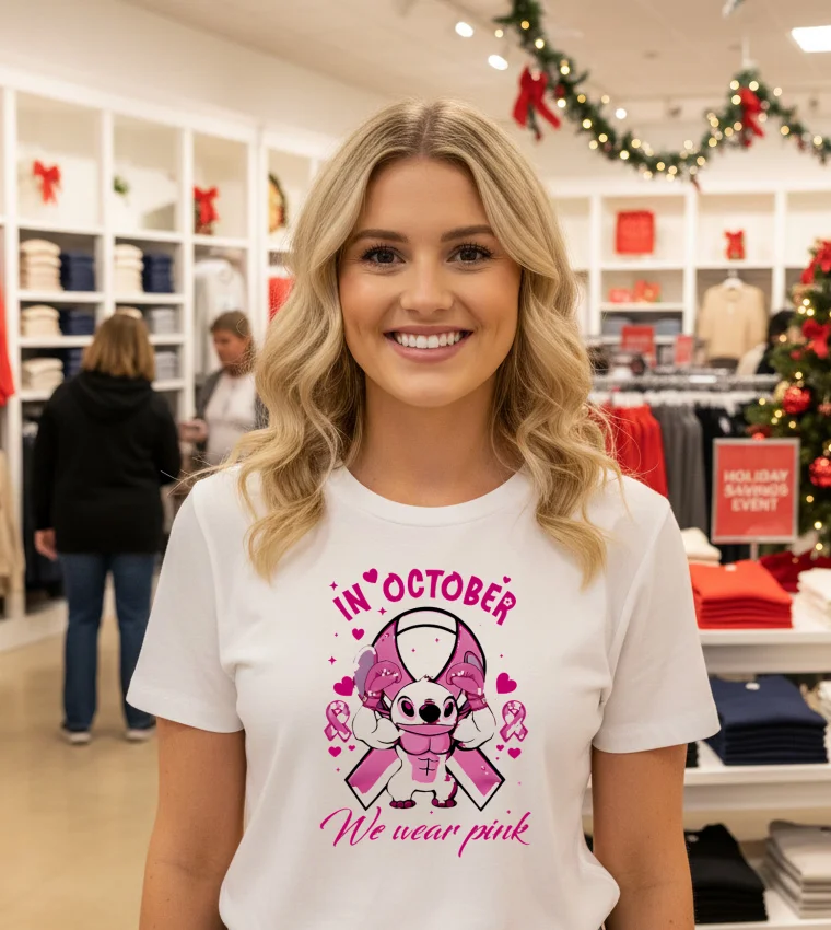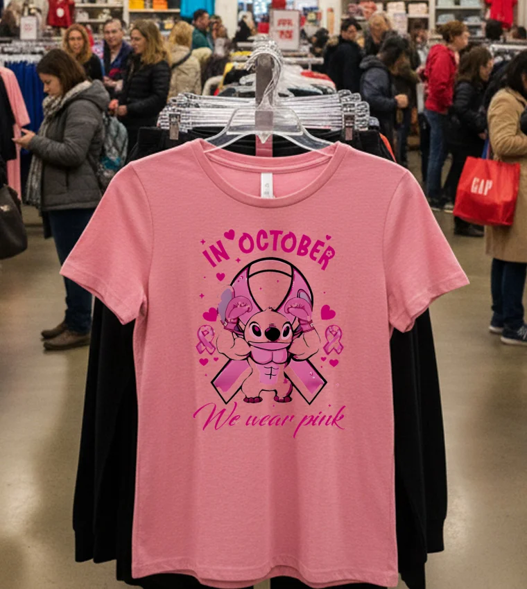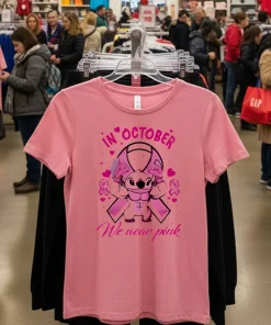 This past week, Washington D.C. has been buzzing not just with politics, but with a vibrant shift in our city’s fashion narrative. I was watching a segment on a local D.C. news channel about “purpose-driven fashion” and how even small sartorial choices can make a big impact. They featured a local influencer, known for her “Capitol Hill casual chic” style, talking about how graphic tees fall are the new staple for adding personality to everyday outfits, especially when paired with a sharp blazer. It immediately clicked for me. October means Breast Cancer Awareness, and I’ve been looking for a meaningful, yet stylish way to show my support without just wearing a plain pink shirt. That’s when I remembered seeing the Stitch In October We Wear Pink Movie Cartoon T Shirts. It perfectly blends my love for a classic animated character with a cause incredibly close to my heart. D.C. isn’t just power suits and formal wear anymore; there’s a strong undercurrent of ‘expressive street style’ from Georgetown to Adams Morgan. People want comfort that tells a story, and this tee fits right into that “conscious consumer” movement. It’s not just a fun design; it’s a subtle yet powerful conversation starter, a silent nod of solidarity that feels right for our community.