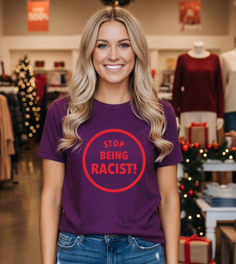 Just last week, during a quick coffee run in D.C.’s Georgetown neighborhood, I couldn’t help but notice the buzz. News had just broken about a local community group’s initiative, “United Voices,” aiming to host a series of open-mic events downtown, tackling social issues head-on. It got me thinking about how we use our voices, not just through words, but through what we wear. I remembered Sarah, a young graphic designer I know, who lives near Capitol Hill. She’d been feeling a bit drained by the constant stream of news, the divisiveness, and the feeling that her individual voice was getting lost. She’s big on conscious consumerism and has a real eye for ethical fashion. She was actually looking for a piece that was both stylish and spoke volumes, something that cut through the noise. When I told her about the Stop Being Racist T Shirts design, her eyes lit up. She imagined wearing it to one of those “United Voices” events, or even just around her neighborhood, making a subtle yet powerful statement. It’s not just about a trend; it’s about embedding your beliefs into your everyday street style. With the upcoming “D.C. Fashion Week Pop-Up” focusing on local designers and statement pieces, it’s clear that Washington’s fashion scene is leaning into more than just aesthetics – it’s embracing purpose. This tee isn’t just fabric; it’s a silent nod to solidarity, a wearable banner for those ready to stand up, even if it’s just by walking down the street.