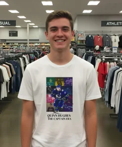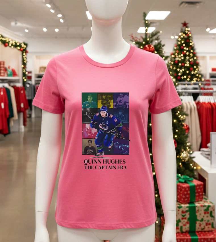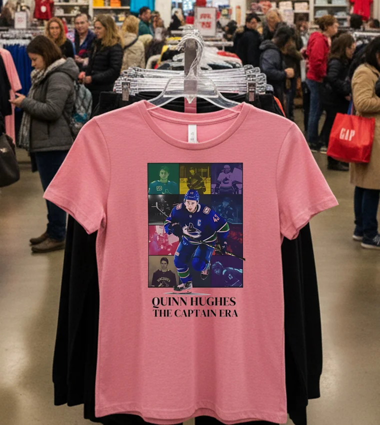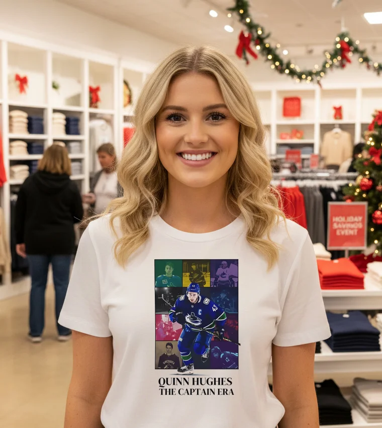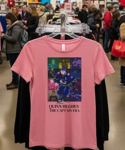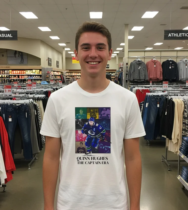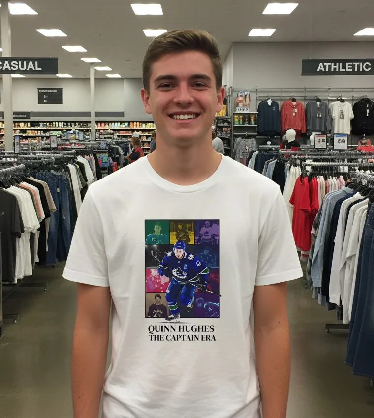 Imagine this: You’re heading to a casual watch party for the Canucks game – maybe at a friend’s place in Arlington, or even one of those sports bars near Nationals Park that sometimes throws up a hockey game. You want to show your Canucks pride, but you don’t want to look like you’re wearing a jersey straight off the ice, ya know? This isn’t just some run-of-the-mill team tee; it’s a statement. It’s for the fan who appreciates the sport’s grit but also knows their personal style. It’s also perfect for someone like my buddy, Mark, who’s always juggling his work-from-home setup with grabbing quick lunch with clients downtown. He needs something that’s comfortable enough for his desk chair but still looks put-together if he has to hop on a quick video call or step out. This tee, with its nod to Captain Quinn Hughes and the new era he’s ushering in, offers that perfect blend. It’s about celebrating a leader on the ice while effortlessly blending into the vibrant, increasingly laid-back fashion scene here in D.C., where athleisure meets urban chic. It speaks to the ongoing shift towards comfortable, statement-making pieces that tell a story without shouting. It’s for the fan who wants to carry their team spirit subtly, yet powerfully, throughout their day, no matter what they’re doing or where they’re going. It’s truly a piece that bridges fandom and modern American fashion.