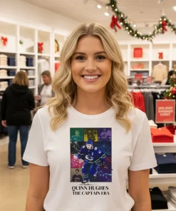 Let’s zero in on that design for a moment. The graphic itself, honoring Quinn Hughes as Captain, isn’t just slapped on there. It’s got this cool, almost vintage-inspired aesthetic that feels both fresh and classic. The typography for ‘Captain Era’ really stands out, giving it that iconic, timeless vibe. It’s not flashy, but it definitely makes a statement – a confident, understated kind of cool, if you catch my drift. The beauty of this tee isn’t just what it says, but how it feels. Seriously, it’s like wearing a cloud! It’s one of those shirts you reach for instinctively because it’s so unbelievably soft against your skin. You can pair it with anything: throw on some distressed jeans and sneakers for a laid-back weekend look, or dress it up a notch with dark wash denim and a crisp, open button-up shirt for that smart casual vibe. It’s super versatile, making it a go-to piece in your wardrobe. Plus, imagine the conversations it’ll spark! A quick, friendly ‘Go Canucks!’ from a fellow fan. It’s more than a shirt; it’s a piece of fandom. Perfect gift for the Canucks faithful in your life, or, you know, just snag one for yourself. You absolutely deserve it!