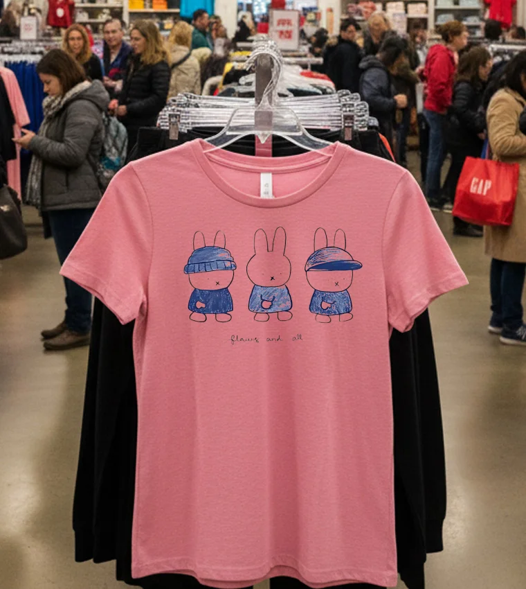 What really sets this tee apart is that adorable, yet edgy, Miffy graphic. It’s not just a cute bunny; it’s an iconic figure re-imagined with a K-pop twist, giving it a playful, almost subversive charm. The design isn’t loud or flashy; instead, it’s subtle, making it incredibly versatile. It just feels right, ya know? When you slip it on, the fabric instantly puts you at ease – no stiffness here! It’s got that perfect lived-in feel from day one. This tee isn’t just comfortable; it’s a style chameleon. Pair it with ripped jeans and chunky sneakers for a classic streetwear vibe, or dress it up a notch with a tailored blazer and some sleek trousers for an unexpected high-low look that’s totally in right now. Layer it under a flannel, tie it around your waist, or simply let it shine on its own. It’s the kind of piece you reach for when you want to feel effortlessly cool and authentically you. Seriously, it’s a game-changer for your wardrobe. Don’t wait—this tee is the perfect gift for anyone who loves unique style and fantastic music!